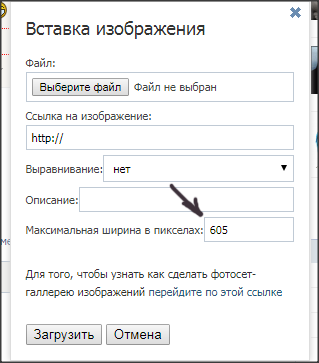 А если при загрузке в этом окошке уменьшить размер? поставить там 550? Мы такой ставим везде, и у нас не обрезается рисунок.