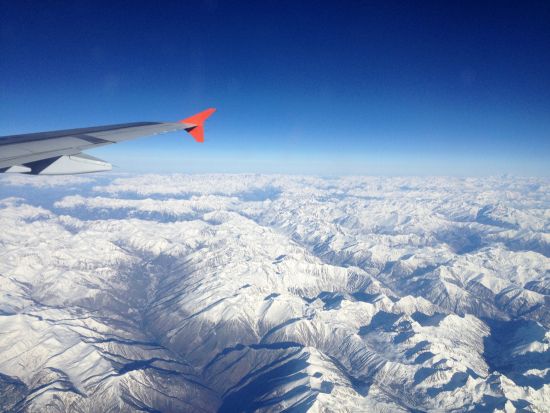 Красота! Но это, видно, небольшой самолёт. Летит даже между гор, а не над ними. Но красота, конечно.)