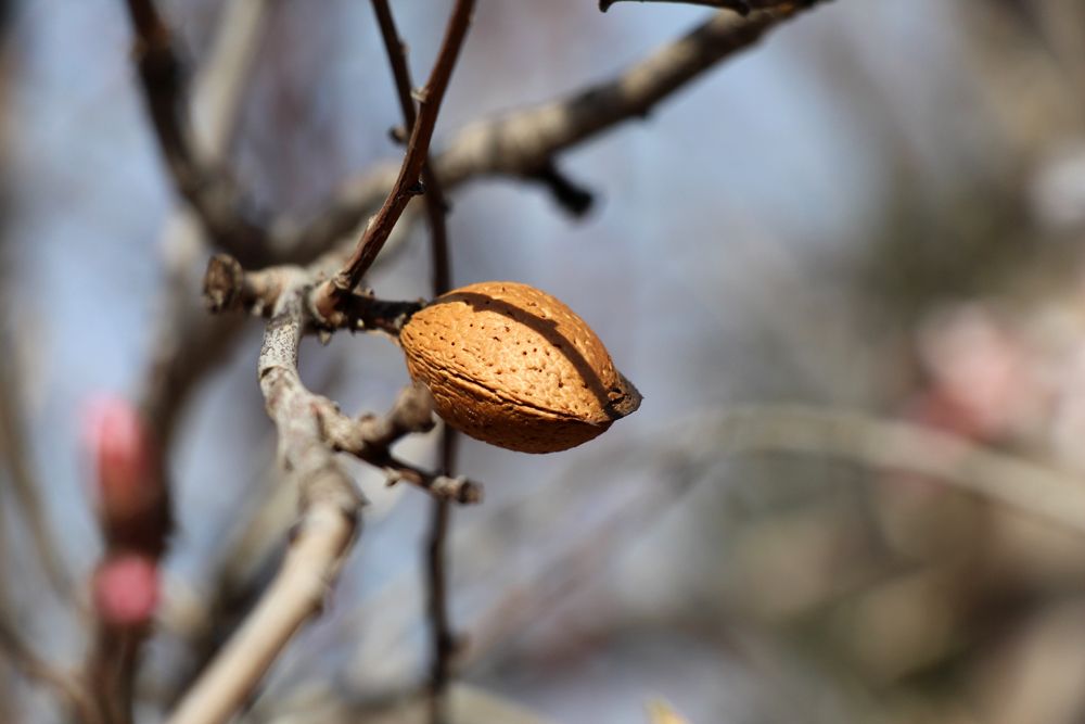 Там миндаль.) Он разный. И белым цветёт, бело-розовым, и розовым. На некоторых деревьях ещё орешки остались прошлогодние.) Не собрали.