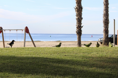 Это павлины никуда не улетят, а попугаи легко!) Тем более, что тут полно попугаев. Не таких, конечно.) Обычных.