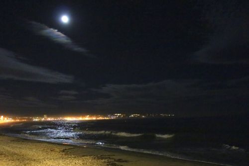 А вот фотографировать больше любим днём.) Так и не научились снимать ночью. Была такая луна! И волны под ней — чистое серебро. А получилось...(