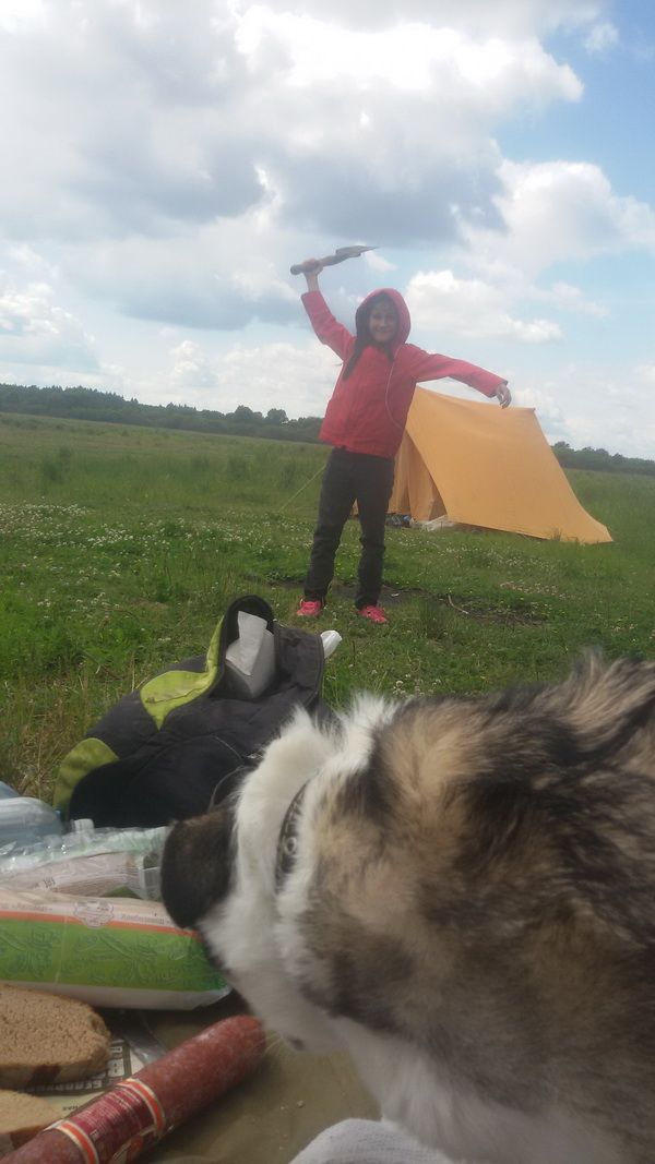 она у меня ваще добрющая такая. особенно, когда у нее в руках саперная лопатка))) мы этим летом в поход ходили. там наша Бусинда на колбасу покусилась. так доча отогнала: