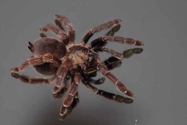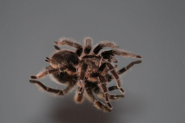 Пару лет назад у нее были паучата, и после этого характер испортился. Но все равно она осталась вполне спокойной, не агрессивна. Единственный паук с кучерявыми волосками — потому и Сью