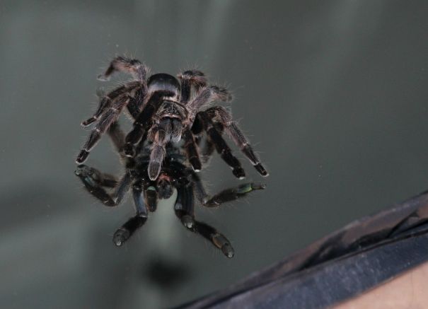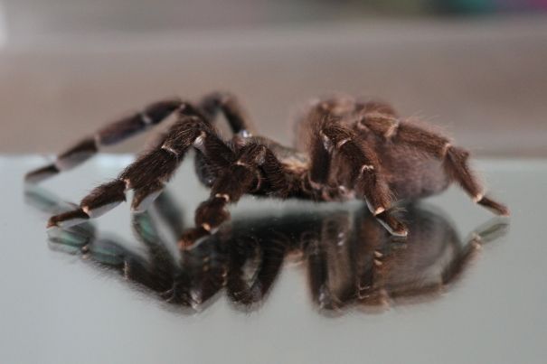 Про нее есть маленькая история) Присмотритесь к лапам. Слева у нее их три, четвертую прищемила ваша покорная слуга :D Паучиха сбежала и стала искать место поприличнее, и очень уж ей не повезло оказать возле моего кресла — я отъехала на кошкин мяв и благополучно отсекла ей все четыре левые лапы. Я рыдала, но искалеченное тело положила на стол, пару минут в приступе истерики приставляла оторванные лапки обратно :D Но какая-то мерзкая жижа сочилась оттуда, а лапки не прирастали… Спас меня муж, внезапно пришедший домой — меня за шкирку и в горячий душ, горе запить водкой. Трухало меня чуть меньше суток — крохотные волоски на ее пятой точке крайне ядовиты, плюс аллергенны. Яд не выдерживает высоких температур, поэтому горячительные во всех смыслах меры меня здорово выручили) Не делайте, как я :D