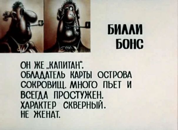 Биили Бонс, он же Капитан, обладатель карты острова сокровищ. Много пьет и всегда простужен. Характер скверный. Не женат
