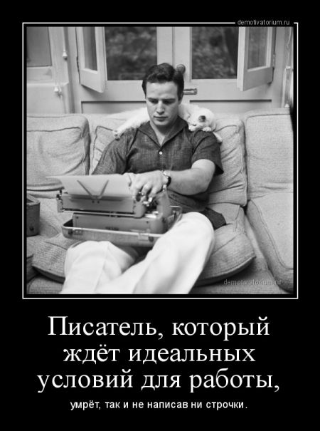 Смотря назад, на себя прошлого, понимаю, что подрос и весьма, во многих писательских вопросах. Да, до настоящего писателя мне по прежнему всё ещё далеко, но я и не тороплюсь, иду по этому пути спокойным шагом. А вам, всем прочитавшим топик, желаю пройти им быстрее меня, не торопливого. И таки издав свой труд, найти признание у миллионов читателей!