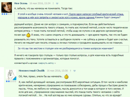 Была ночь… я залез в топик, уточнить правила и сроки, и потянула меня нелёгкая почитать старые комменты. Наткнулся, улыбнулся, сфоткал вспомнив последний мой разговор с Осенью, а этот разговор именно последний и кинул ей сюда. Реанимировать? Разногласия? Споры? Фигня это всё, а не реанимация, не разногласия и не споры. А в личку… да хз, наверное она права, порисоваться решил, не получилось, ну да и ладно