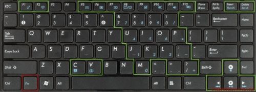 Левый нижний угол, кнопка Fn при нажатии подключает другую функцию кнопок.