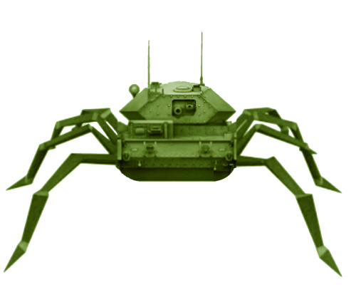 Шот какт… проще нельзя? Взять за основу паука с 6 ногами, к ногам присабачить бронированные щиты (для простоты передачи, сочлинения ног запрятанные за щитами) и пушка нос, которая стреляет только в щель между щитов. Чтоб развернуть пушку надо либо перебирать лапками, либо подниматься на них и разворачивать пушку. Щиты вощем рулят