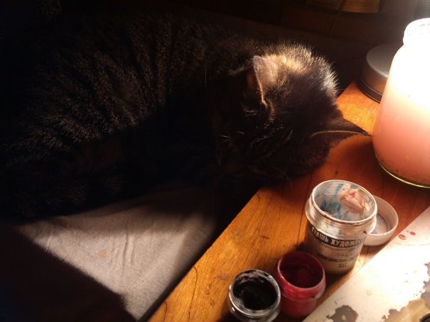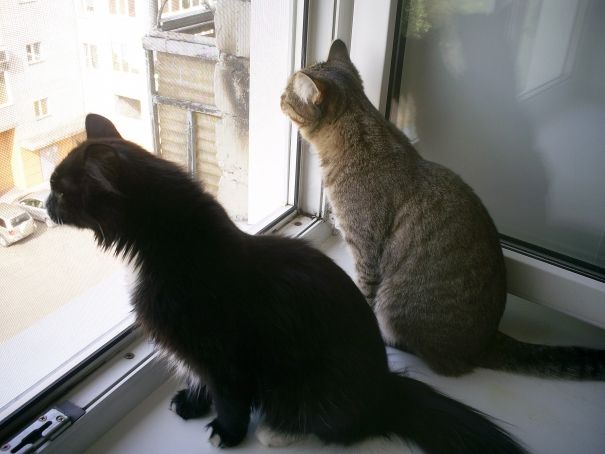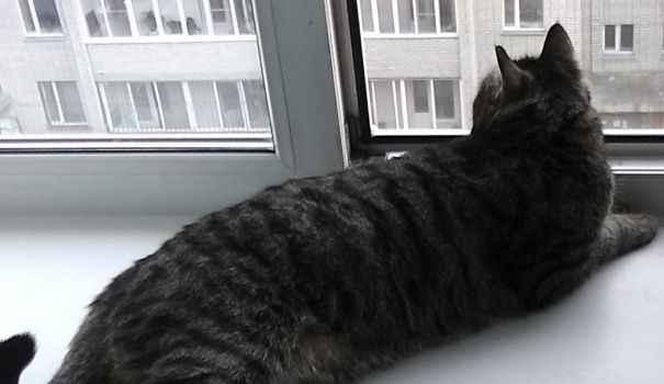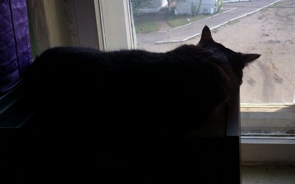 Потом младших кысочек увезли жить в другой город, и у Мышки осталась только я, а я все время в компьютере, а она грустит(