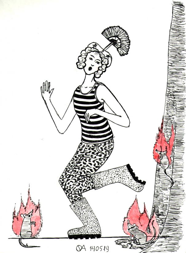 Это вояка Марс испугался огненных мышей. Они для него просто жуть какой кошмар)))