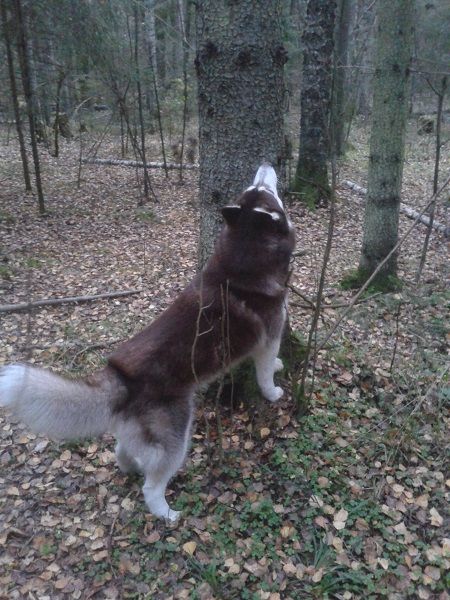 Оказывается, что всё интересное живет на деревьях. При попытке залезть по вертикальному стволу Беня дважды бумкнулся, понял, что прыгать по веткам он не может, тихо следит за шевелением в кроне.