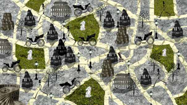 Старинный город Таймбург. Идет дождь, по улице спешат прохожие, кто под зонтом, кто без зонта. Едут экипажи, сами по себе без лошадей.