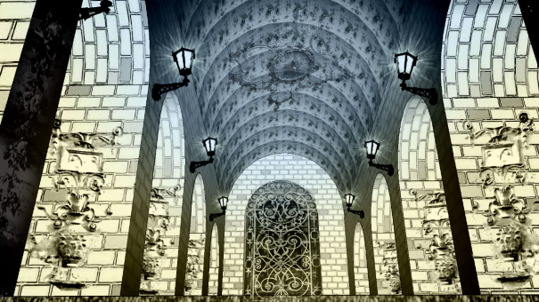 Демон довольно кивает. Из тумана улицы показывается роскошный экипаж, останавливается перед героем, открывает дверцу. Герой садится в экипаж, едет во дворец. Во дворце в сверкающем зале героя ждет накрытый стол, за которым сидят наполовину люди – наполовину музыкальные инструменты. Герой садится за стол, жадно набрасывается на еду.