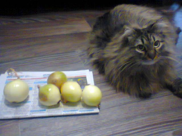 Бонечка на всякий случай запасается луком! За неимением чеснока…