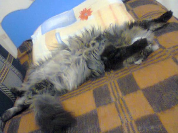 Сидеть? Я тут сплю вообще-то… Но у кота на этот счет свои взгляды…
