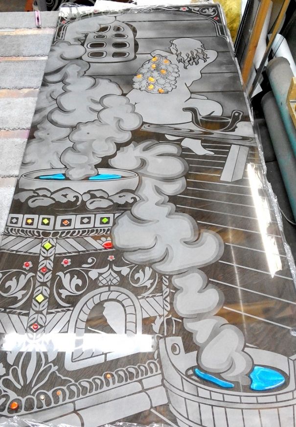 Это старение, снимаем защитный слой зеркала и портим-портим амальгаму)) Потом на образовавшийся узор лепим поталь или красим, в жизни выглядит немного иначе)) Вот. Могу еще принести чего-нить)