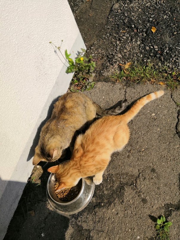 Сочувствую. Наверное, реакция на корм зависит от породы. Наших дворовых чем только не кормят — за всеми не уследишь. К тому же их сейчас пятеро. Это только тех, кто прибился к нашему зданию, есть еще живущие во дворе у ангаров. Некоторые остаются довольно пушистыми, все-таки у дворян иммунитет посильнее, чем у породистых.