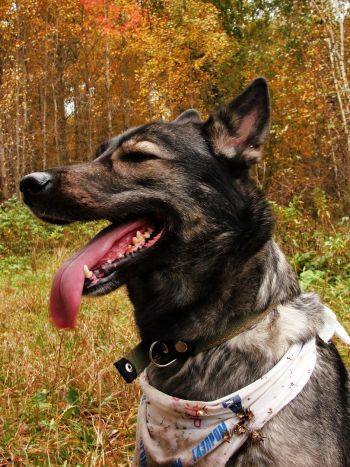 Практика показала, что если собака носится по лесу с платком, то люди перестают шарахаться в кусты и неистово креститься