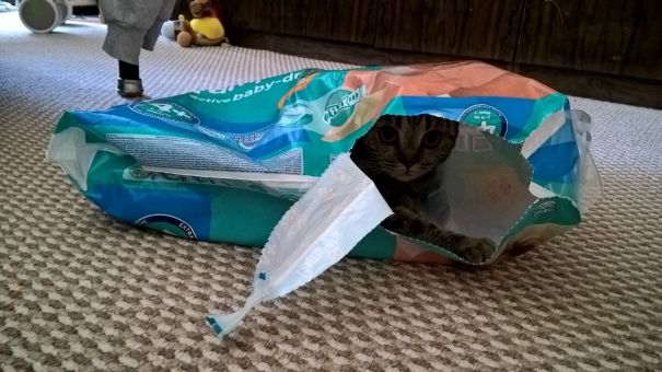 Ну да. Шуршат. Они думают, что там бегает кто-то, и пытаются охотиться. Бывает, что кто-то один в пакете шуршит, а тут другие снаружи как накинутся.