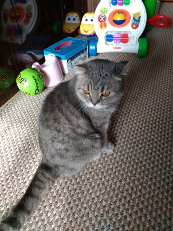 Это да. Как из магазина придешь, тут же в пакеты лезут. Тут главное — не спугнуть. Когда удирают с пакетом на голове, все углы сшибают.