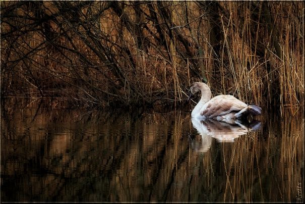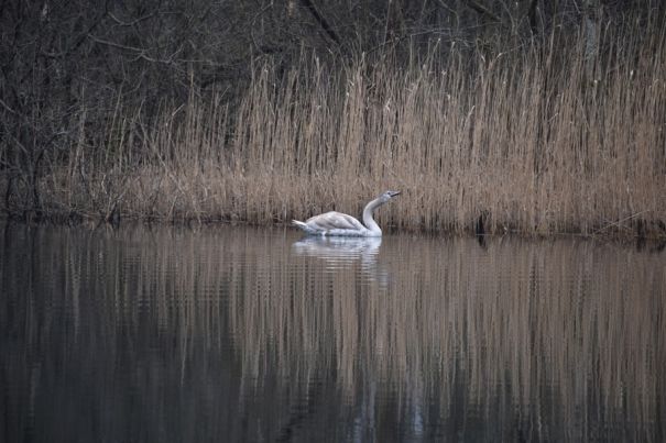 Итак, шли мы себе шли возле озера, а у другого его берега плавал себе молодой лебедь. Далековато, погода не ахти, потому и качество соответствующее — мой аппарат неплохой, но свои границы тоже имеет. Я даже хотела это все обойти и подойти с другого берега, но не удалось… не важно.