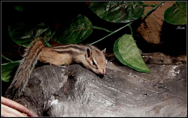 Пока вот только два, несколько худшее качество, потому что за стеклом. Варан и спящий бурундук.