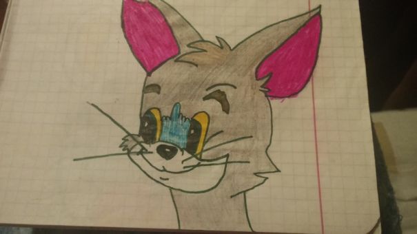Зато что у вас прекрасные и открытые работы!) Я только умею срисовывать. А этот чудесный кот был нарисован в период просмотра мультфильма))) Зовут Том)