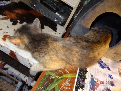 Так мне мозаику надо было собирать)) У Тимона это мания — увидел коробку с паззлами — пришел — лег. Все) Что хочешь с ним делай потом…