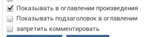 Поставьте галочку там, где она стоит на скриншоте — «Показывать в оглавлении произведения» и будете видеть список ваших глав — полноценное содержание -слева от текста. Можно добавлять главы, не стирая их