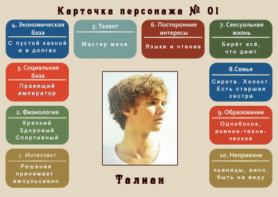 Персонажи узнаются в поступках — в выборе, который они делают. Анкета в этом плане статична. Она как фотография ДО начала школы. А персонаж, он динамичен. Он 11 классов учится — и в каждом классе уже не такой, как прежде.