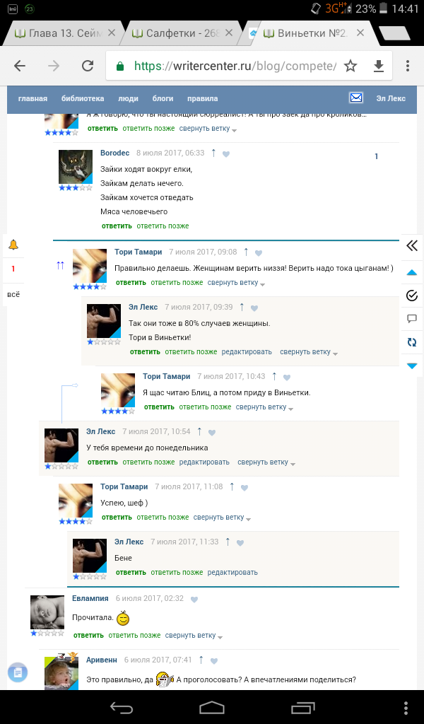 Тори так или иначе в 3х виньетках участвует, она мне обещала