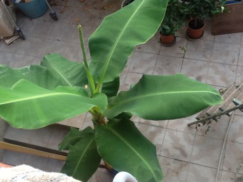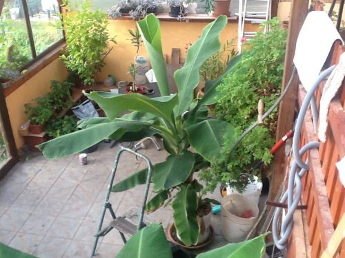Бананы вы уже видели, а весной сына пожалел отрезанную попку от съеденного ананаса, посадил ее в горшок, она укоренилась и родила детку:
