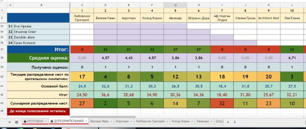 Доп баллы кому там ясно кому/от кого в ДОПОЛНИТЕЛЬНОЙ таблице. Идете под текст этого человека и находите коммент с разбалловкой, где написано что про что. В Доп таблицу пишется только сумма, из которой излекается средний балл за 7 пунктов и так получается дополнительный балл.