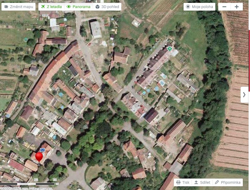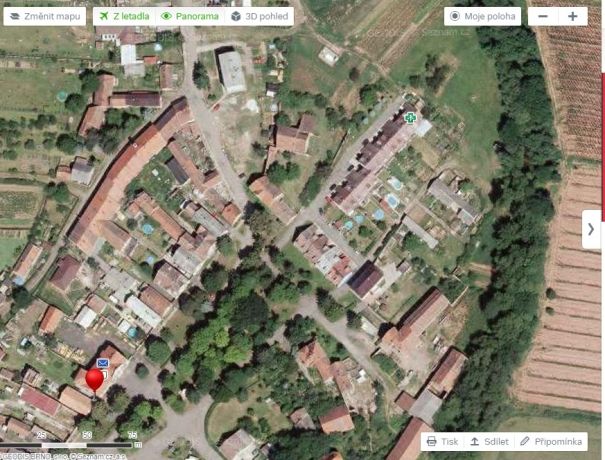 там где зеленый крестик — мой дом, последний в ряду. далее лужок — все наше. Полудуга деревьев по правому краю фотки — ручей…