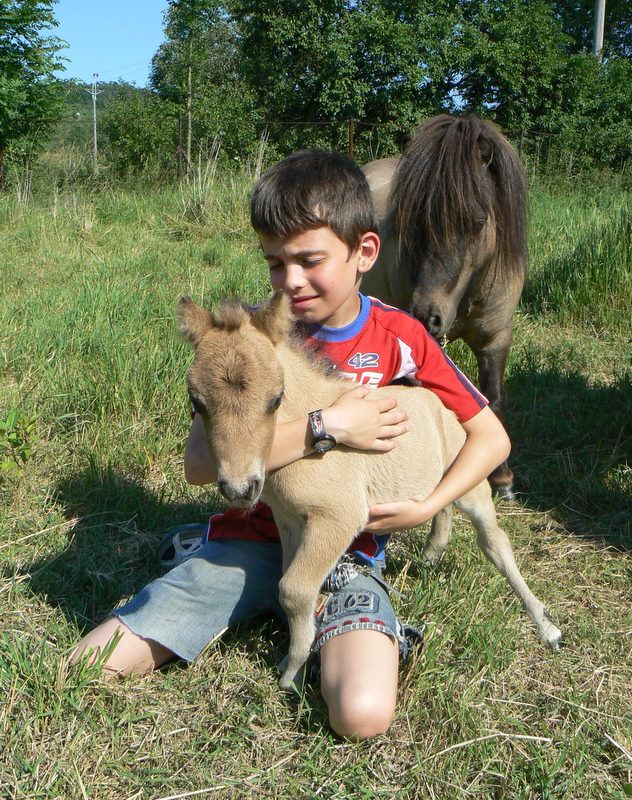 первая кобылка (у Мартина в руках) родилась в папку — саврасая, а второй соловый