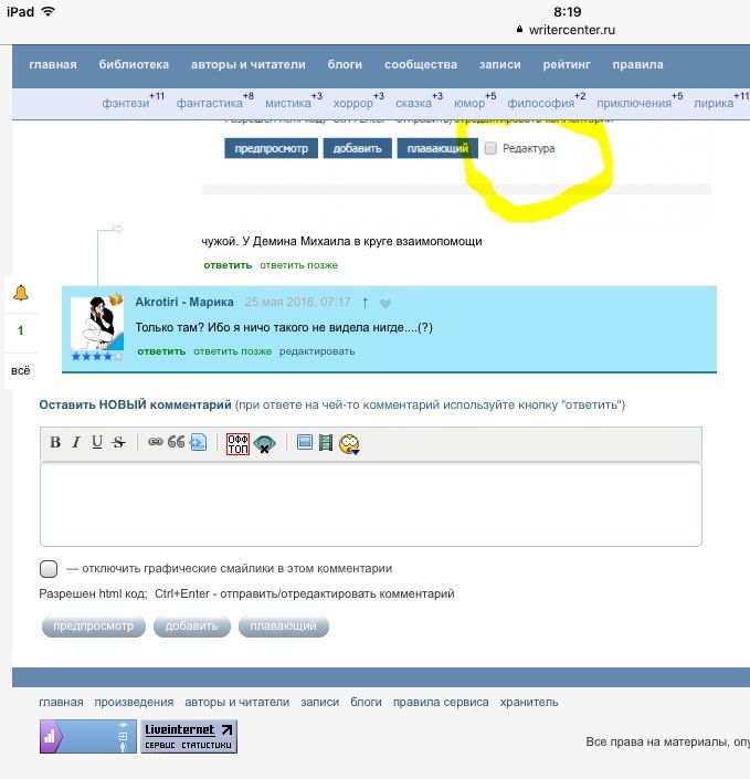 + напишите «заголовочек», что эот рецензия в рамках ккп и + дайте ссыль на топик с рецензией, а то Григорий немного тут заблудяется — сайт навороченнный