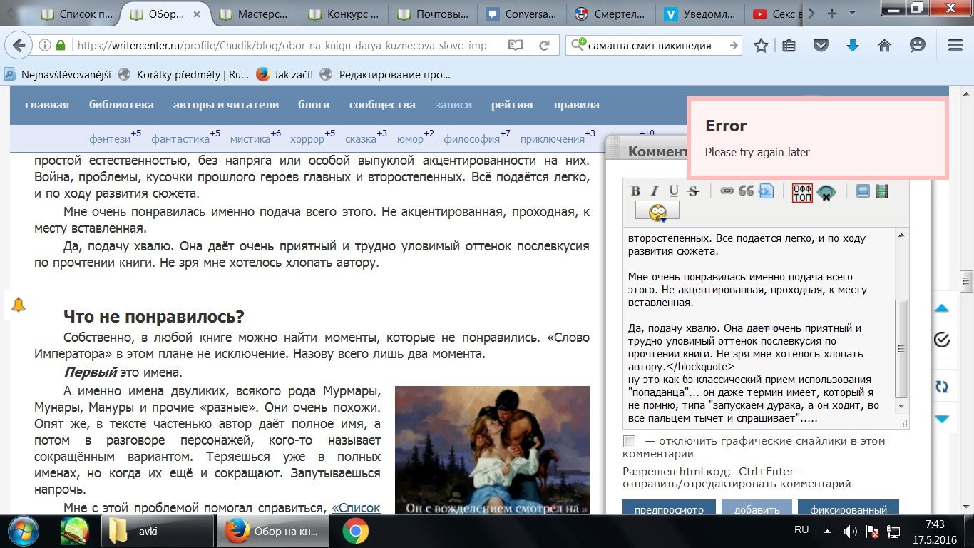 writercenter.ru/comments/2182855/ chyba zabespecennoho spojeni во всю экрану… и пришлось восстанавливать по памяти… хныки… повтор отослался в черновики без проблем.