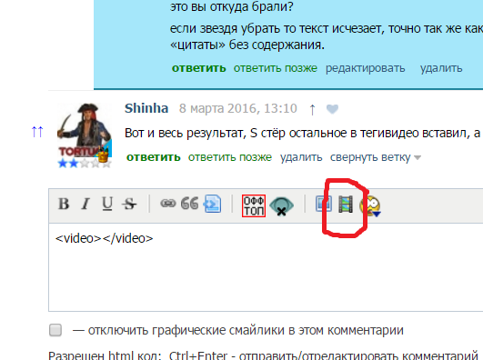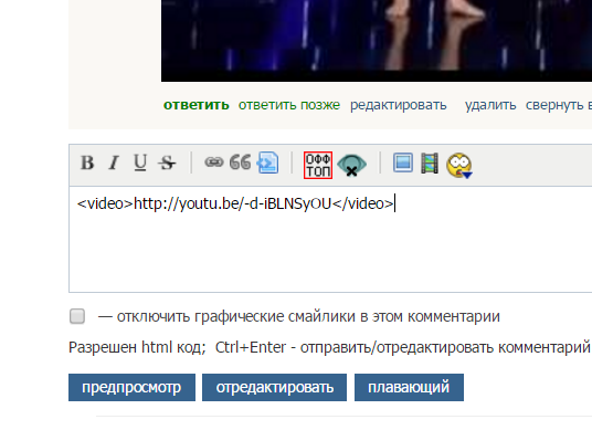 вот я открыла комм с вставленным видео в режиме редакции, чтобы вы увидели, как выглядит коммент с видео перед публикацией.