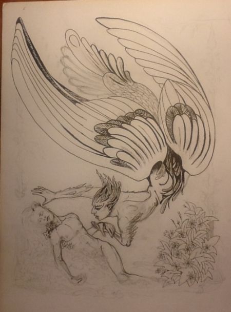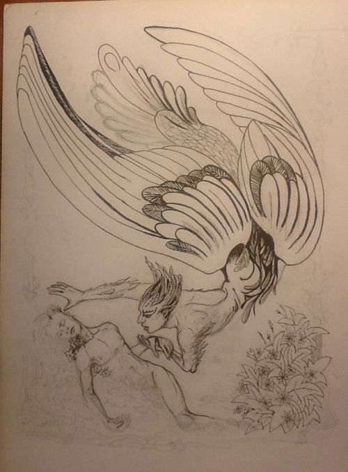 даванула pen brush + крыло правое изгадила. Пришлось взять ножнички, отчикать часть крыла, приклеить на чистую бумажку и левый столбик сделать выше. Теперь правый столбик хочет тоже быть выше, а на бамажке рисовать, это снова сканить и чистить скан, т.к. полоса склейки видна