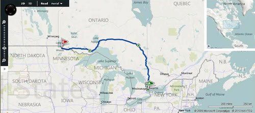 Янг Стрит начинается в центре Торонто, проходит через озеро Онтарио, огибает еще одно озеро (Симко), поворачивает на запад и доходит прямо до границ Миннесоты.