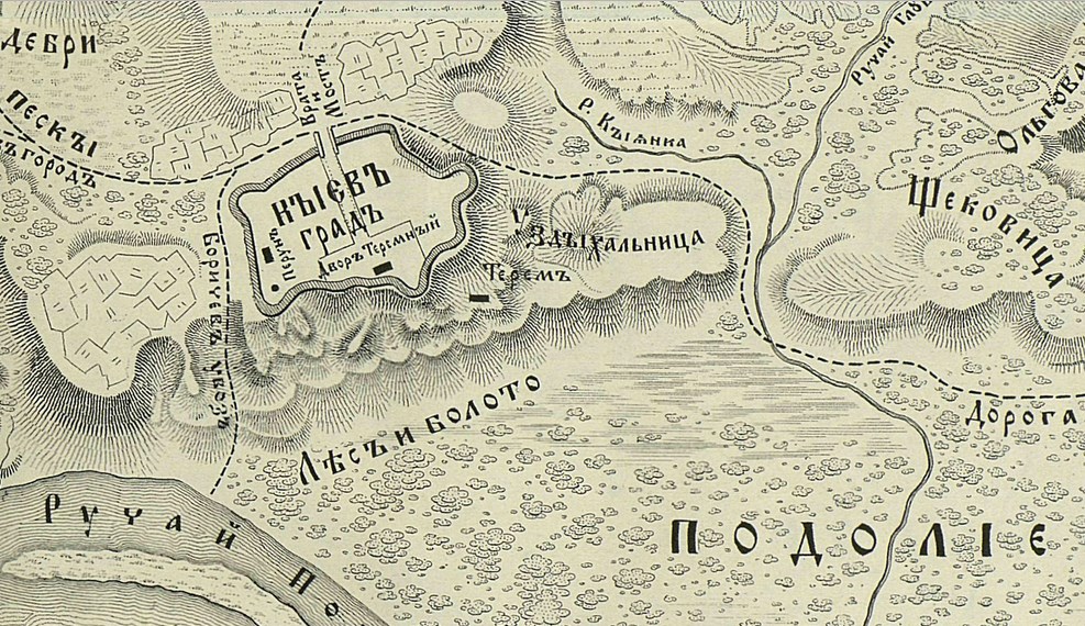 Тогдашний киевский детинец ещё не был Верхним Городом, так он стал называться после расширения, уже при внуке Ольги Владимире (гарем которого, к слову, в 300 жён и наложниц, помещался в том же Вышгороде). Осаду печенегов Ольга со внуками пережила в Киеве, а место её первоначального захоронения неизвестно, если кто-то и сообщает о Вышгороде, то этому нет подтверждений в первоисточниках.