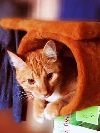 И глаза зелёные, как положено кошкам. А у нас чёртик какой-то, а не кот — глаза рыжие