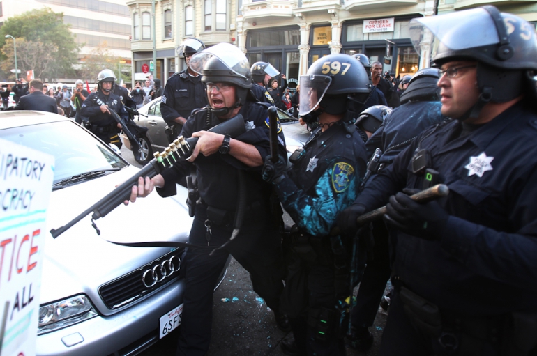 30 сентября 2011 года участники движения прошли маршем возле штаб-квартиры нью-йоркской полиции. Около 1000 человек несли транспаранты с критикой действий правоохранительных органов. Акция протеста состоялась после того, как во время одной из демонстраций полицейские брызнули слезоточивым газом в четырёх женщин. Видеоролик с инцидентом быстро разошёлся в Интернете, и многие участники акции пообещали «стоять до конца». Демонстранты решили оставаться в палаточном городке в Зукотти-парке всю зиму. 1 октября 2011 года полиция арестовала более 700 демонстрантов, участников движения «Захвати Уолл-стрит», которые запрудили проезжую часть в попытке пересечь Бруклинский мост. 4 октября 2011 года трое протестующих были задержаны в Бостоне по подозрению в распространении наркотиков. Помимо этого, участников движения задерживали за такие правонарушения, как поджоги, убийство, изнасилования, кражи и вандализм.