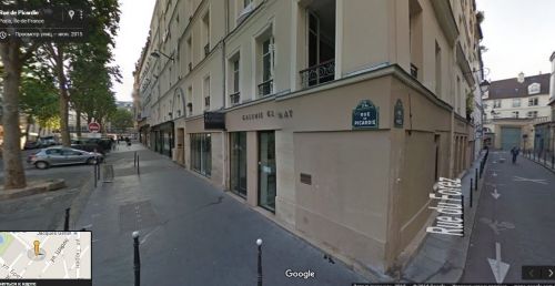 Вот ещё фото этого перекрёстка. Судя по характерным потёкам на углу со стороны тихой Рю Дю Форе, с уличными туалетами в Третьем округе Парижа плоховато дела обстоят