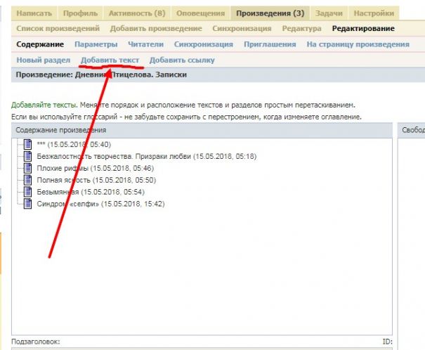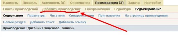 вносишь информацию: название, обложку, описание… ну там галочки — какие категории текстов.