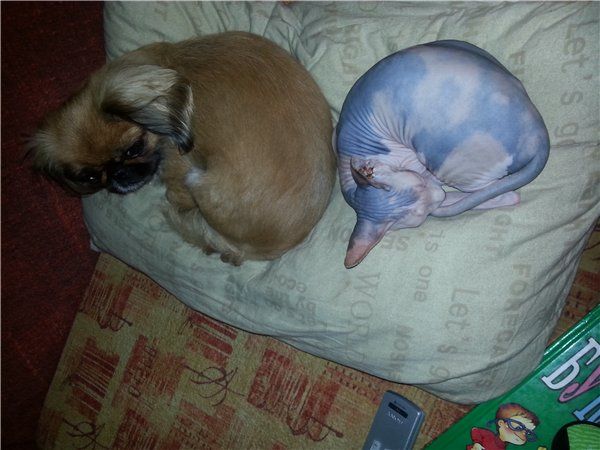 Фи! Собака? Так собака-это же лучшая в мире няня!!! На фото Ева и пикинес Мотя. Лучшие друзья с разницей в возрасте 5 лет. Мотя сама по себе раздолбайка, но в воспитании сфинкса проявляет себя отличным педагогом