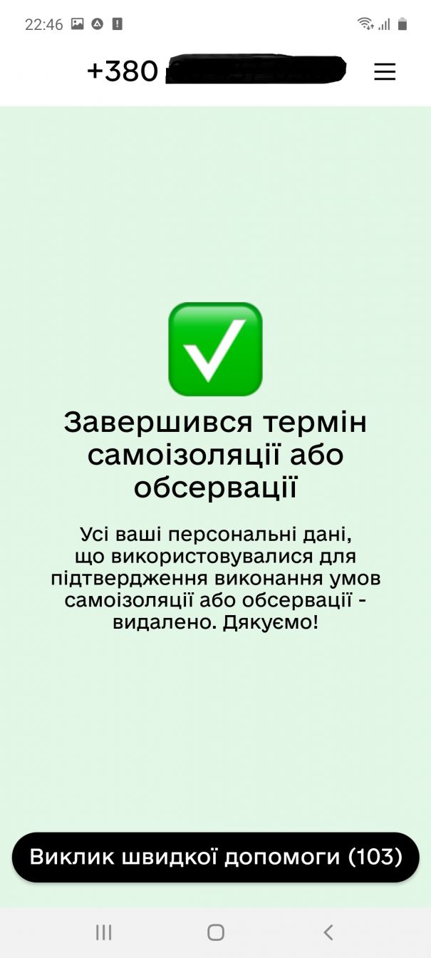 В итоге в документе с результатами теста мне написали неправильно фамилию, хотя девочка в приемном окошке озвучивала ее правильно. Тут самое главное, чтоб они правильно записали номер телефона. Потому что именно к этому телефону у тебя привязывается приложение. Лаборатория отправляет твои результаты сама, не ты. Направляет она в Центр общественного здоровья Украины, а потом Министерство цифровой трансформации вносит сведения о прекращении самоизоляции в это самое приложение «Дій вдома». У подруги, например, ошиблись в адресе ее электронки, и результаты не пришли на почту, но с приложением все синхронизировалось в то же время что и у меня.