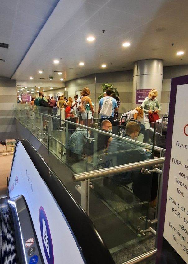 К багажному отделению мы не добрались, сразу пошли за толпой делать тест на ковид. И первое, с чем толкнулись: ни тебе названий лабораторий, никаких опознавательных знаков. И персонала рядом нет, чтоб спросить. Простояли в очереди минут сорок, когда поняли, что это не наша лаборатория. А наша, оказывается, на другом крыле.