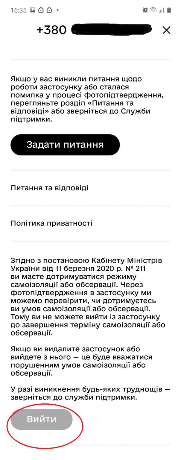 Потом был паспортный контроль. И уже там у тебя должно быть установлено приложение на телефон «Дій вдома» (Действуй дома). То есть тебя не пропускают, пока не увидят у тебя активированную программу. Но по-хорошему надо было, чтоб там стоял специальный человек, который бы показывал, где это приложение взять, как его активировать и до какого момента щелкать по кнопочкам. А то в суматохе вполне реально нажать кнопку, по которой ты фиксируешь место своей локации на самоизоляции. И поменять ничего нельзя. Программа так устроена.